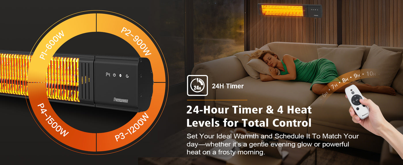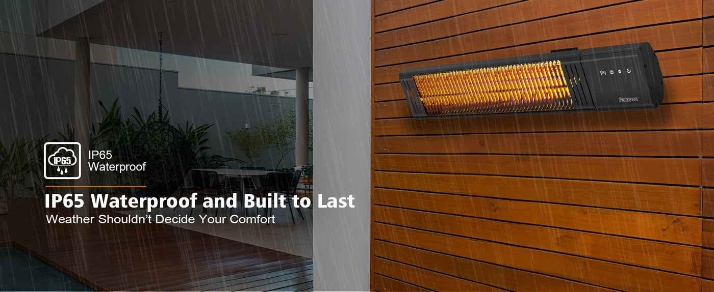 - 全天候耐用性和 IP65 防水设计 这款户外加热器经久耐用,可防雨、防尘、防潮,是四季户外使用的露台加热器的可靠选择。