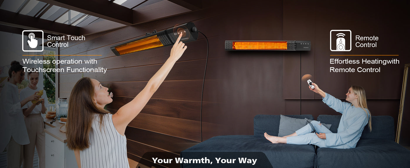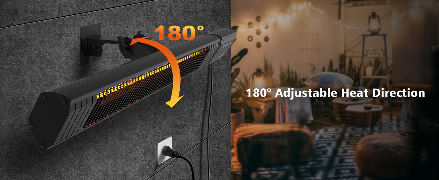 - Flexible Installation for Indoor and Outdoor Use Designed with wall-mounted convenience, this infrared heater easily adapts to any space—whether you're heating a backyard patio, restaurant terrace, home workshop, or garage. Its low-profile design and powerful performance make it a smart choice as a wall heater, electric heater, or space heater for indoor use. It’s perfect for both open-air areas and enclosed rooms.